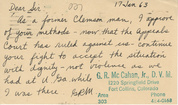 Letter from McCahan to Edwards, January 1963 Clemson University Libraries Postcard explaining that he approves of Edwards methods to remain peaceful and dignifed during Gantt's admission.