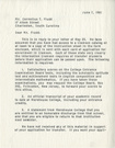 Letter from Vickery to Fludd, June 1961Clemson University LibrariesAcknowledging receipt of Fludd's May 25 letter. Lists requirements for application: "1. Satisfactory scores on the College Entrance Examination Board tests and forwarding scores. 2. Official transcript of academic record at current institution. 3. Statement from current institution that he is entitled to honorable discharge and eligible for return." Vickery writes that they have not received any of this material and to please send right away to be considered.