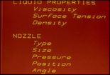 List of Nozzle and Liquid Properties