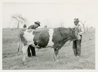 Farmer and pure-blood bull, 1941 March Clemson University Libraries African American farmer and pure-bud bull.