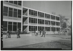 Martin Hall PickensClemson University LibrariesUA100_2084; On Back: [Martin Hall] [1969]; Students changing classes at English-Math Complex; For Mel Long