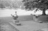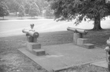 A. Wolfe Davidson's grandson Kevin McCulloch with cannons near Bowman Field on Clemson University campus, circa 1980