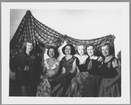 Group portrait of six women, modeling dresses of Orr Mills cloth, created by a ...