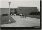 Entrance to Poole Agricultural CenterClemson University LibrariesSouth-facing exterior shot of students on walkway and steps in front of the entrance of Poole Agricultural Center. On back: [Poole Agricultural Center]; [Plant and Animal Science Building]; [Bull's Head by Willard Hirsch, 1955]