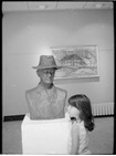 A. Wolfe Davidson's granddaughter Jennifer Burwinkle with bust of Marshall Prevost in an exhibition, 1971
