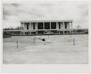 R. M. Muldrow Cooper Library with empty Reflection PondClemson University LibrariesUA100_1824; On Back: Return to: Public Relations Office Clemson University Clemson, SC; [R.M. Cooper Library]; Stamped: WITH THE GOOD WISHES OF WILTON E. HALL ; Stamped: ENGRAVED FEB 18, '66 Independent & Daily Mail