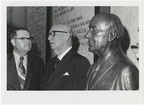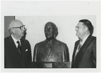 Edgar A. Brown and R. C. Edwards posed with bust of BrownClemson University LibrariesUA100_1939; On Back: [Robert C. Edwards, Edgar A. Brown, bust of Edgar A. Brown by Julian Harris] [Edgar Brown Room in R.M. Cooper Library] [c1971]