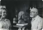 A. Wolfe Davidson (right) with Andy Ball and his portrait bust, 1970