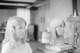 A. Wolfe Davidson (right) and girl posing with bust of herself
