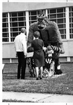 Performing bear at Clemson CollegeClemson University LibrariesOn front of photograph: Teddy Bear. On back: Winter 1911 -- Cadets watch a trained bear go through it's paces in front of Tillman Hall as part of some extracurricular entertainment. Submitted by Dr. Frank H. Lathrop, 451 Royal Pines Dr. Arden, N.C. 28704.
