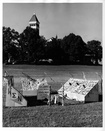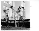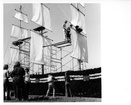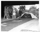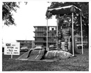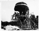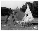 Homecoming display under constructionClemson University LibrariesRiggs Hall in background, display on current Trustees Park. On back: Homecoming-1960 (UNC). Stamped: Nov 5 1960.