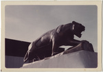 "Brotherhood of the Tiger" statue outside Littlejohn Coliseum on Clemson University campus, circa 1969