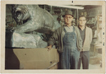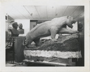 Man with clay model for "Brotherhood of the Tiger" statue, circa 1967Clemson University LibrariesModel is preliminary for A. Wolfe Davidson's "Brotherhood of the Tiger" aluminum statue commissioned by Tiger Brotherhood and installed in front of Clemson University's Littlejohn Coliseum in 1969. Bust of Frank Howard in background.