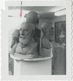 Clay busts of Theodor Herzl (center front), Chaim Weizmann (right front) and others in A. Wolfe Davidson's home studio, circa 1967