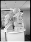 Busts of Theodor Herzl (front left), Chaim Weizmann (front right) and Robert C. Edwards (back left) in A. Wolfe Davidson's home stuido, circa 1967