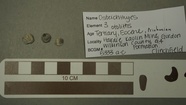 Bony fish (Osteichthyes), three otoliths Bob Campbell Geology Museum Formation: Clinchfield Formation.