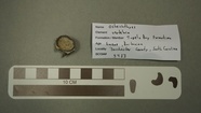 Bony fish (Osteichthyes), vertebra Bob Campbell Geology Museum Formation: Tupelo Bay Formation.