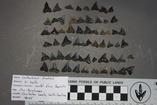 Carcharhinus plumbeus, 22 upper teeth Bob Campbell Geology Museum Formation: Bone Valley Deposits.