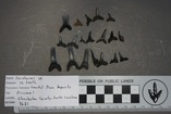 Carcharias sp., 20 teeth from various tooth positions Bob Campbell Geology Museum Formation: Clinchfield Formation.