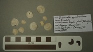 Divaricella quadrisulcata, three right and eight left valves, six articulated specimens