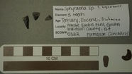 Sphyraena bognorensis, 11 isolated teeth Bob Campbell Geology Museum Formation: Clinchfield Formation.