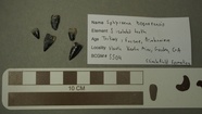 Sphyraena bognorensis, nine isolated teeth Bob Campbell Geology Museum Formation: Clinchfield Formation.