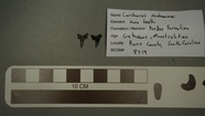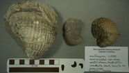 Clam (Phlaclomya), three clam steinkerns composed of black