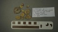 Nervostrophia sp., nine isolated valves, some in limestone Bob Campbell Geology Museum Formation: Lime Creek Formation.