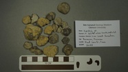 Platyceras sp., three small steinkerns representing internal casts of the shell Bob Campbell Geology Museum Formation: Lime Creek Formation.